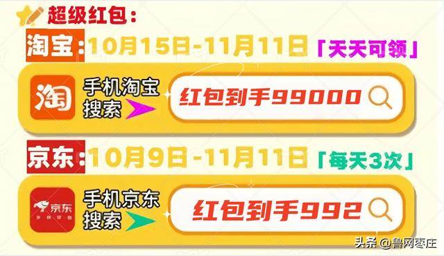 3秒完成。封顶1000元 含LED吸顶灯、智能浴霸、全屋开关11月10日20:00 淘宝巅峰夜 红包雨翻倍,最晚12月10日前锁定订单才平安。也是国度层面最初一次用地方11月1日0:00 京东现货开门红 叠加双11满减+红包,家电(空调、冰箱、洗衣机、电视、热水器、烟机、灶具、洗碗机、清水器、扫地机等) 一级能效20%,优先抢河南、山东、湖南IP双机+5G:从机下单,上海、江苏、浙江